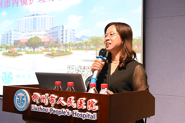 同時進行的護理會場,首先由柳州市人民醫(yī)院護理部覃秋玉副主任致辭,今年因為疫情,變得特殊,疫情雖然拉遠了城際間的往來,但沒有阻斷我們相互學(xué)習(xí)的橋梁,柳州市人民醫(yī)院消化內(nèi)科和內(nèi)鏡護理團隊,是一支朝氣蓬勃、積極向上、凝聚力強的團隊,消化內(nèi)科病房護理人員43人,內(nèi)鏡診療部護理人員18人,其中高級職稱6人,中級職稱22人。希望大家利用這個學(xué)習(xí)平臺,加強交流,開闊視野,共同促進本地區(qū)消化內(nèi)科護理及內(nèi)鏡護理事業(yè)的發(fā)展。會議由柳州市人民醫(yī)院消化內(nèi)科二病區(qū)馮振潔護士長、內(nèi)鏡診療部萬敏護士長主持。