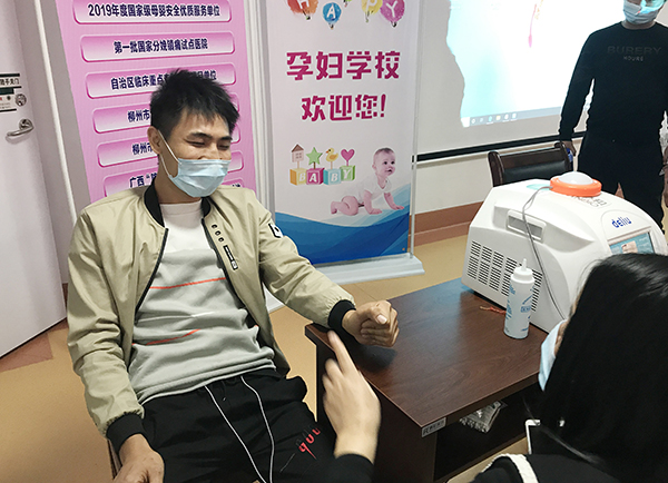 最后一節(jié)課是大家期待的“準(zhǔn)爸爸分娩陣痛體驗”,由柳州市人民醫(yī)院產(chǎn)科孕婦學(xué)校盧連梅老師帶領(lǐng)大家一起體驗分娩陣痛這個過程,準(zhǔn)爸爸加入到懷孕和分娩這個過程中來,親身體驗分娩的痛,體諒和分擔(dān)孕媽媽的焦慮,鼓勵孕媽媽們堅持順產(chǎn)。一位二胎的寶媽跟盧連梅老師反饋說,一直都想到現(xiàn)場聽老師們講課,但是都沒時間,現(xiàn)在老師們進(jìn)到社區(qū),來到家門口,終于能現(xiàn)場聽課了,聽完課剛好可以去接大寶放學(xué),很方便,很感謝老師們。