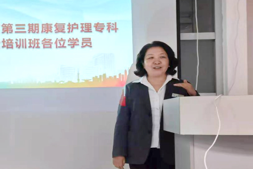 護理部覃秋玉副主任給學員們進行了崗前培訓,介紹了專科護士培訓管理規定及相關要求,她強調了康復專科護士培訓的重要性,講解了專科護士培訓大綱的核心框架和學時分布,希望各位學員分配好時間,充分利用這次學習機會,更好的掌握專科知識。