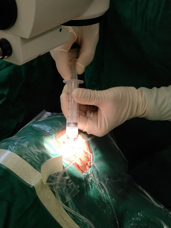 器械一到,他馬上通知患者到醫院接受23G微創硅油取出術。23G微創硅油取出術在國內屬較先進的硅油取出術。手術所用的一個關鍵器械是付鵬利用以前進修時學到的知識,自己動手將輸液管剪一小節套在注射器上,形成負壓裝置將硅油抽取出來。這個自制器械非常適合手術設備短缺的非洲。