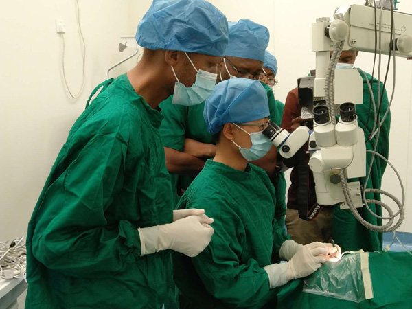 “在中國,硅油取出術是一項成熟的手術,只要有相應的設備和器材就能做,可是當地沒有。我只能先讓患者回家,然后想辦法解決。”付鵬首先聯系國內的同事幫忙準備手術器材,他再找到當地的中資機構,讓他們幫忙把手術器械捎來。