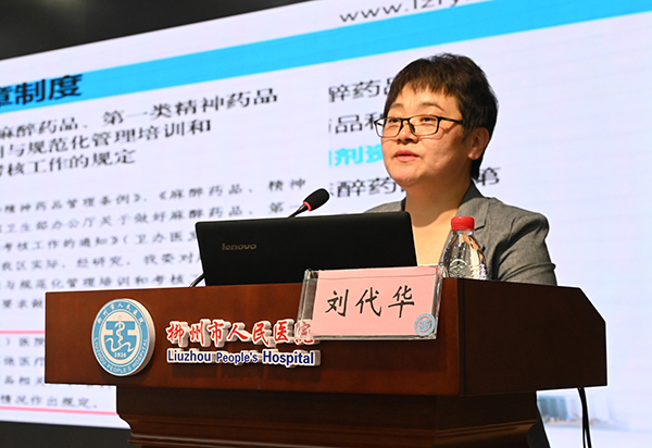 本次培訓班由藥學部劉代華副主任主持并致開場辭,特別邀請了來自中南大學湘雅二醫院的劉文輝教授以《科學鎮痛,用好阿片類藥物這把雙刃劍》為主題,從阿片類藥物作用的特點、相互作用以及不良反應的管理三個方面詳細論述了阿片類藥物在癌痛中的合理使用。劉代華副主任結合我院精麻藥品使用情況詳細講解了《精麻藥品管理規定》,內容包括精麻藥品管制實施的原因、國家麻醉藥品與精神藥品的相關管理制度,精麻藥品處方開具的注意事項等。最后,由藥學部謝瑞杰副主任藥師以《我院精麻藥品處方中常見問題分析》為主題,以我院近期一些典型的不合理麻醉藥品處方為例進一步強調了精麻藥品的處方書寫規范。