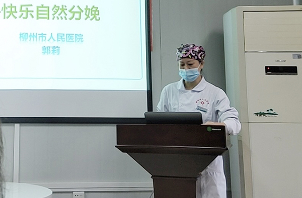 10月13日,在門診三樓孕婦學校,助產士藍黃浩向大家介紹了柳州市人民醫院產房的團隊和環境,展示了產房的優質護理項目:分娩鎮痛、晚斷臍、自由體位分娩、導樂分娩、母嬰早接觸等。著重講解了什么是分娩的自由體位,自由體位分娩的好處和配合方法。