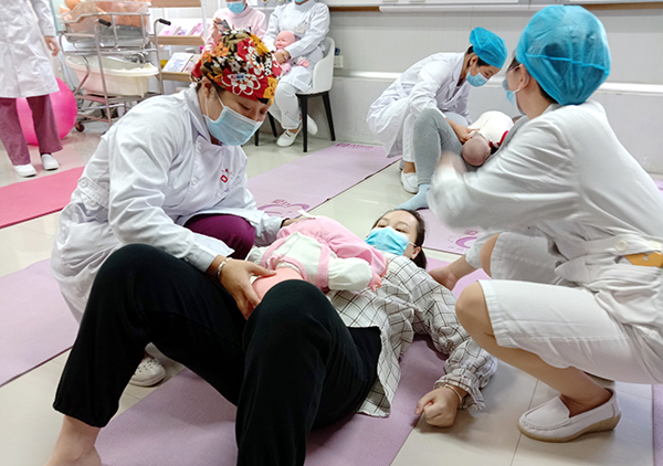 10月20日,助產士黃春芳帶領大家體驗了一番自然分娩,手把手教準爸爸陪產,現場準媽媽準爸爸積極加入到導樂球的使用、站位、坐位等自由體位的分娩體驗中,學習氛圍濃厚,大家爭先體驗學習。