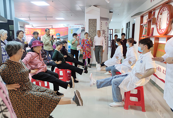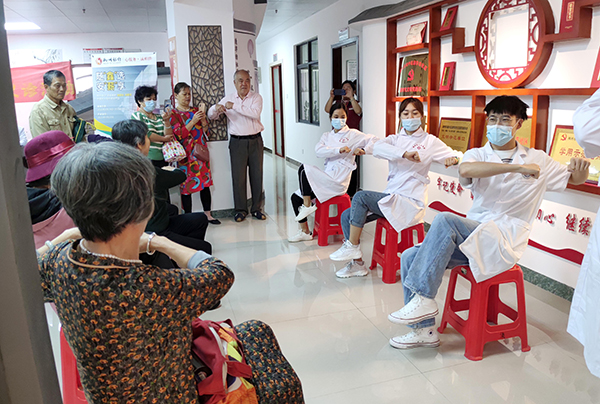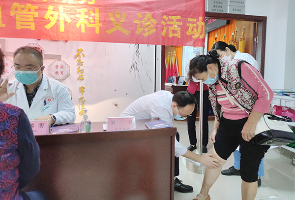 10月12日一早,血管外科陳俞宏副主任帶領(lǐng)8名醫(yī)護人員來到清華坊社區(qū)服務(wù)中心,聯(lián)合河?xùn)|街道社區(qū)衛(wèi)生服務(wù)中心將血栓科普知識、義診帶到群眾家門口,積極向社區(qū)群眾宣傳、科普血栓防范知識,提供現(xiàn)場咨詢和“防栓操”現(xiàn)場教學(xué),活動現(xiàn)場熱鬧非凡,部分咨詢?nèi)罕姮F(xiàn)場篩查后,立即預(yù)約門診就診時間。血管外科專門為久坐、久站不動人群自行設(shè)計的“防栓操”備受群眾青睞,把隔壁銀行職員也吸引了過來,積極參與到義診和宣講活動中,社區(qū)群眾紛紛要求醫(yī)護人員現(xiàn)場反復(fù)指導(dǎo)直至完全學(xué)會,醫(yī)護人員均給與了耐心解答和指導(dǎo),受到社區(qū)群眾的熱情響應(yīng)和高度贊揚。本次義診活動共接診50余人次,參加血栓科普宣講活動33人次,發(fā)放宣傳資料80余份,極大滿足了社區(qū)群眾的健康需求。