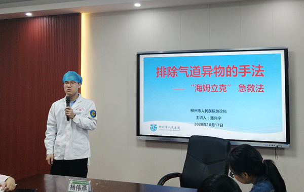 為了提高幼兒園教師的急救能力與疫情防控意識(shí),預(yù)防和減少校園意外事故的發(fā)生,切實(shí)做好秋冬季新冠肺炎校園防控工作,10月17日上午,我院市民急救學(xué)校的醫(yī)護(hù)人員一行六人來到柳東新區(qū)第一幼兒園,開展了一次以“關(guān)注幼兒健康,助力校園安全”為主題的應(yīng)急救護(hù)及疫情防控等相關(guān)知識(shí)培訓(xùn)活動(dòng)。參加此次培訓(xùn)活動(dòng)的共有來自該園的60多名教師,現(xiàn)場(chǎng)氣氛活躍,培訓(xùn)取得了良好的效果,獲得了校方高度贊揚(yáng)。