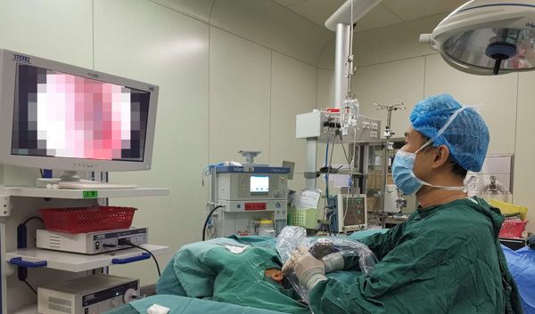 病情容不得猶豫,職責不允許退縮。身為主診醫生的他第一時間聯系麻醉、手術室團隊做好嚴格防護措施,患兒入院后的2小時,凌晨1點左右患兒被送進了手術室。因為麻醉和手術都必須經過患者氣管,所以氣管異物手術不能像常規手術一樣插管麻醉后再從容的操作。加上兒童的氣道狹窄,視野狹小,手術風險大,手術成敗與窒息死亡往往就在2-3分鐘之間,業內形容為“走鋼絲的手術”。