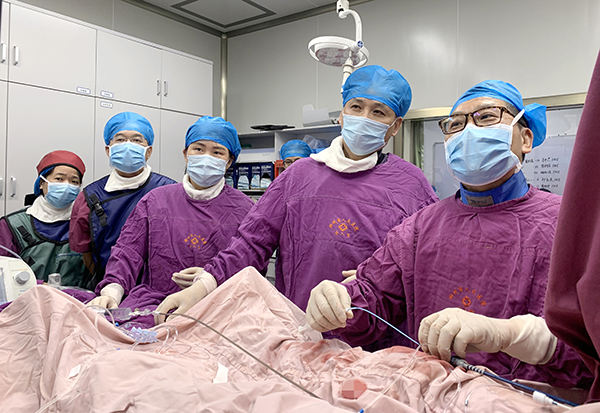 在副院長黎榮山的帶領下,該院心內科心電生理介入團隊副主任卓柳安、副主任醫師孫立平和副主任醫師黃於娟經過反復討論,并與病人深入溝通后,最終制定了三維標測導管射頻消融術的治療方案。歷時兩個小時,手術順利完成。