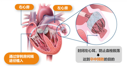 左心耳封堵術就是通過特殊的封堵傘封閉左心耳開口,使左心耳完全閉合,從而消除左心耳形成血栓的隱患,達到預防腦中風的目的。該手術時間短、創傷小、恢復快,封堵術后房顫患者僅需要服用抗凝藥數月,待封堵器被心內組織完全覆蓋后,即可告別長期服用抗凝藥的煩惱。
