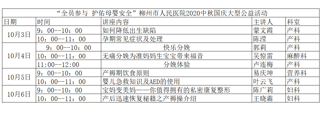 秋天第一講:“全員參與,護佑母嬰安全”——柳州市人民醫(yī)院2020年中秋、國慶大型公益活動通知