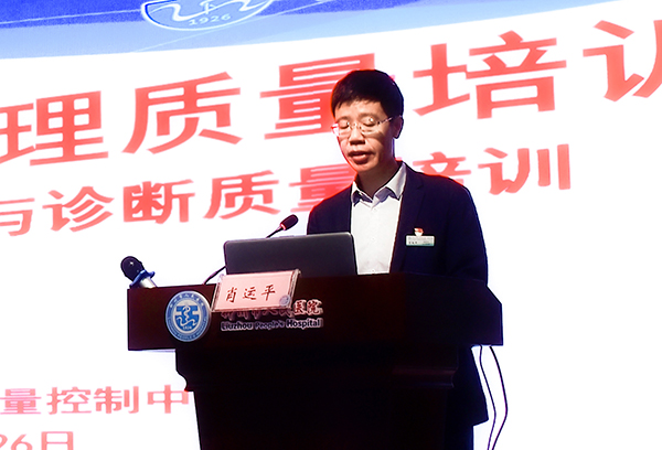 我院肖運平副院長為開班儀式致辭,細胞病理學檢查是病理工作的重要內容之一,具有經濟實用、簡便可靠的特點,不但在疾病的診治過程中起著重要的、不可或缺的作用,而且在腫瘤的早期發現和防治中也具有重要的意義,希望通過此次培訓,提高我市醫療機構細胞病理學技術與診斷質量。