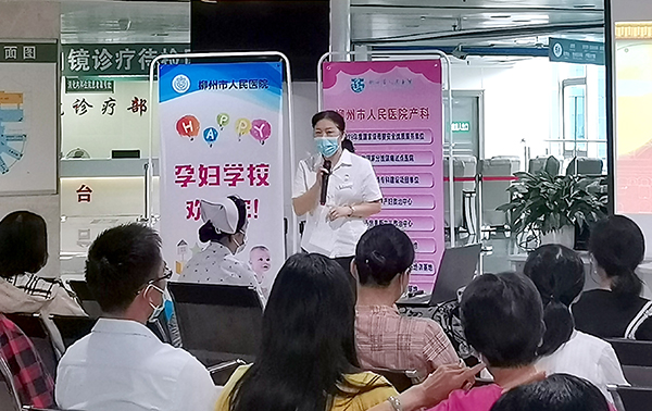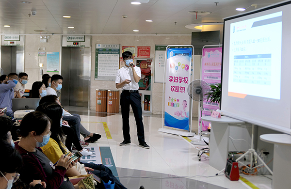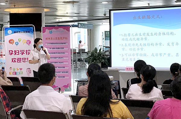 在大家熱烈的掌聲中,今日課程正式開始,蒙文霞主任與大家分享了“如何降低出生缺陷”的知識,號召全社會科學備孕、重視婚前檢查和孕前檢查,聽從醫生指導做必要的產前診斷,科學孕育健康生命。接下來是產科陳瀅副主任醫師跟大家講述了“孕期常見的癥狀及處理”,解決準媽媽十月懷胎中的憂慮?,F場聽課氛圍濃厚,互動積極,準爸爸們爭先提問,大家熱情互動、積極討論。