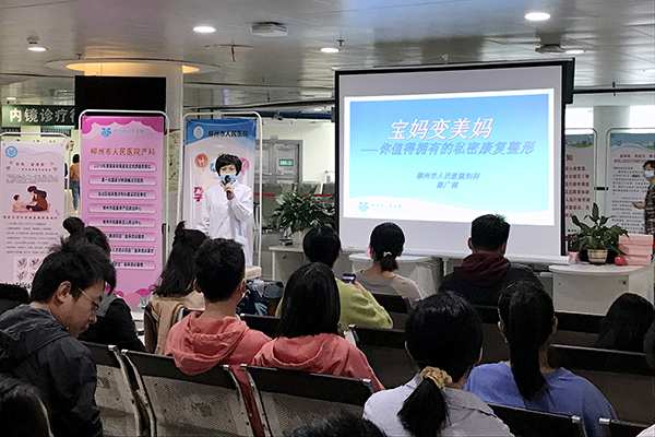 10月6日上午,一場寶媽變辣媽的美麗之旅開啟。婦科主任醫師陳廣莉跟大家分享了產后私密康復整形的內容和方法,強調了產后科學進行產后恢復的重要性以及做好產后康復正確方法。婦科王曉霜醫師帶領大家學習產褥操,在婦科康復團隊老師一對一的指導下,部分準爸爸親身體驗產褥操,隨后還帶領大家參觀了婦科盆底康復治療區。