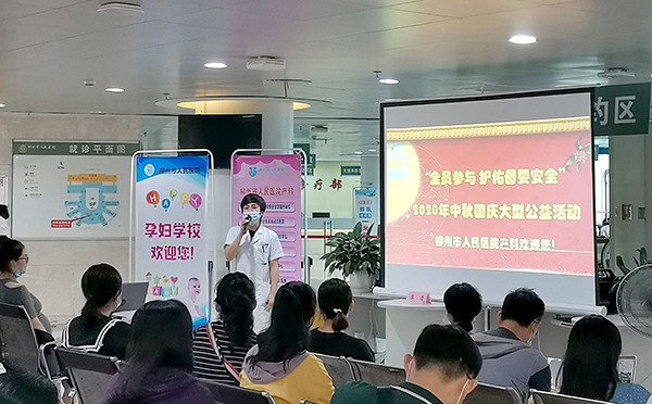 金秋時節,秋風送爽,為祝賀柳州市人民醫院榮獲2019年度國家級母嬰安全優質服務單位,為了感謝廣大市民對柳州市人民醫院的選擇和信賴,柳州市人民醫院產科孕婦學校聯合婦科、麻醉科、營養科于10月3日至10月6日在門診五樓中廳開展了以“全員參與 護佑母嬰安全”為主題的2020年中秋國慶大型公益活動。本次活動主要以講座形式進行,邀請各個科室的主任及科室骨干給大家授課,學員提前預約每日課程,課程內容既有理論也有實踐體驗,持續四天的課程基本涵蓋了從妊娠期、分娩期到產褥期全方位、專業的、科學的知識和技能。本次活動得到了全院上下及柳州市人民醫院臨床技能中心的支持,得到了準爸爸、準媽媽的青睞,每日課程爆滿,四天累計簽到參與人數400余人,發出相關知識宣傳冊400余份。在中秋國慶這個長假期間,大家的學習熱情高漲,氣氛熱烈。