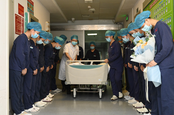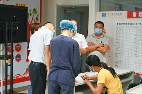 8時50分許,當因車禍致重型顱腦損傷、已被判定為腦死亡的小宇被醫護人員從病房里推出來時,柳州市人民醫院重癥醫學科的醫護人員整齊地站在病區門口對小宇行鞠躬禮,小宇的親人悲傷難耐,痛哭流涕。在家人的護送下,小宇被送往我院的手術室進行器官獲取手術。