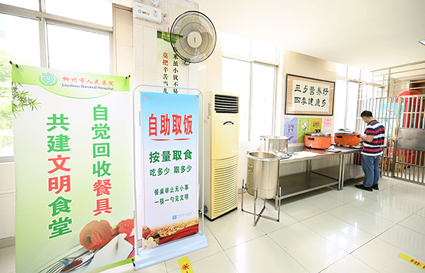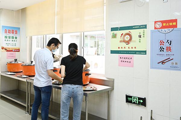 利用醫院內外網、微信公眾號、LED屏幕、醫院電視和健康宣教等多種渠道開展文明用餐宣傳,加大教育和引導;在食堂設立“文明用餐督導員”,監督和勸導職工文明用餐,做到“光盤”;二樓食堂由“窗口打飯”改為“自助盛飯”,要求“吃多少盛多少”;倡導職工主動適量點菜,減少大份菜品、少點多份菜;將“文明用餐”延伸推廣到職工家庭中,倡導健康、衛生、節約的用餐方式,以餐桌小文明帶動全院大文明,讓職工及家屬的節儉意識和文明素養不斷提升。