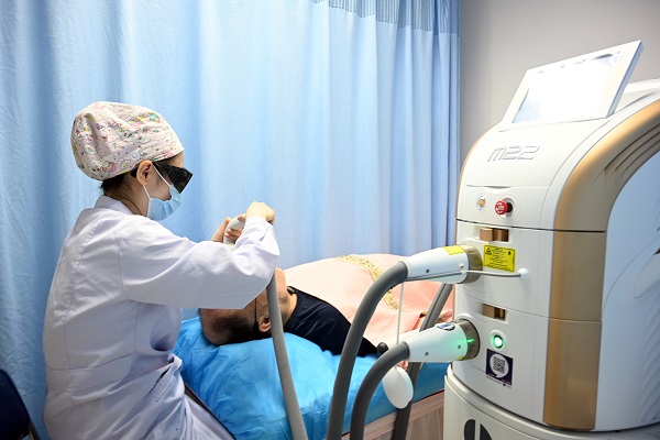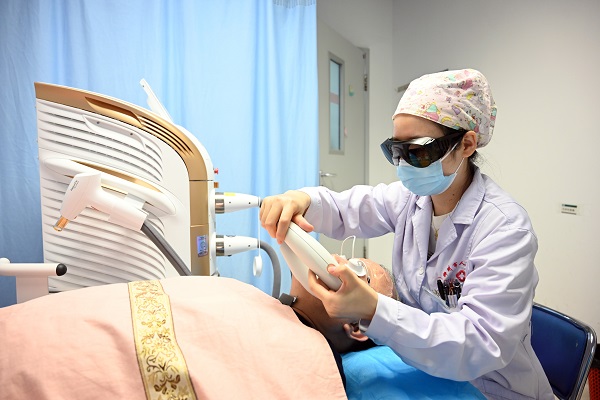 醫務人員正在使用新引進的M22黃金超光子設備進行皮膚管理