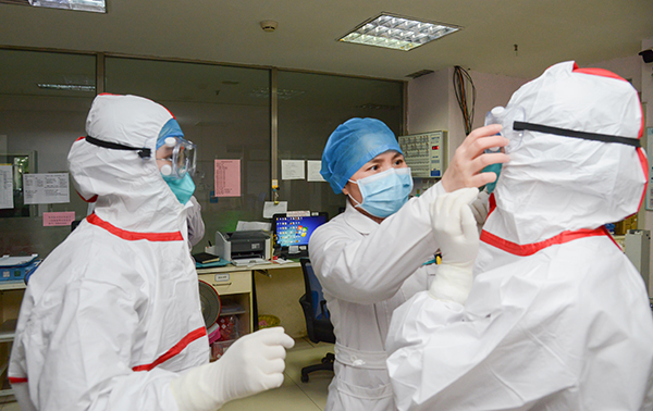 “農(nóng)歷除夕前一天,醫(yī)院感染病科二病區(qū)收治的新冠肺炎疑似病人已經(jīng)很多,二病區(qū)的床位只剩幾張了。一病區(qū)的同事們意識到:要提前做準備了。果然,當晚6時許,醫(yī)院通知我們兩個小時內(nèi)整理出新的隔離病房接收病人。那晚,大家一直忙到凌晨。”