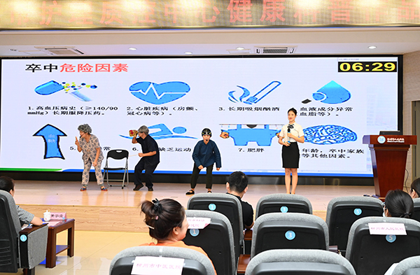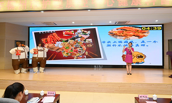 在比賽現場參賽隊員們精神飽滿,場下座無虛席,各支隊伍集思廣益,通過情景劇、演講等多種形式,運用順口溜、詩歌、舞蹈等通俗易懂的表達方法,借助道具、聲光,寓教于樂,生動地展示著健康知識,并向廣大人民群眾普及和傳播。