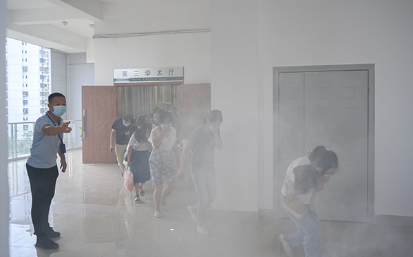 培訓課后,為加深參加培訓人員對消防安全及應急自救知識的理解,進一步鞏固學習成果,隨后進行了應急疏散演練。參加演練人員在消防專干謝鋒同志的統一指揮下有序疏散,低姿捂鼻,順墻體利用就近疏散樓梯有序撤離到一樓安全地帶。