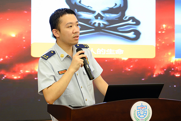 接著,黃家豪參謀給我院職工上了一堂生動的消防安全培訓課。黃參謀以一則慘痛的火災案例帶給參加培訓人員深刻的警示教育。同時,他從機關單位主要存在的安全隱患、如何落實有關制度避免火災發生、消防安全“四個能力建設”等知識為大家進行了精彩的講解。隨后大家觀看了《痛思—火災警示錄》。