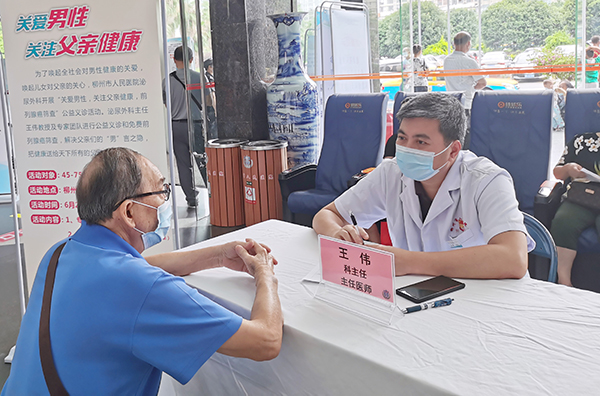 為了喚起社會對男性健康的關(guān)注,6月份以來,柳州市人民醫(yī)院泌尿外科主任王偉主任醫(yī)師帶領(lǐng)該科室專家團(tuán)隊(duì)分別在鹿寨縣人民醫(yī)院及柳州市人民醫(yī)院門診大廳開展“關(guān)愛男性,關(guān)注父親健康,前列腺癌篩查”公益義診活動。