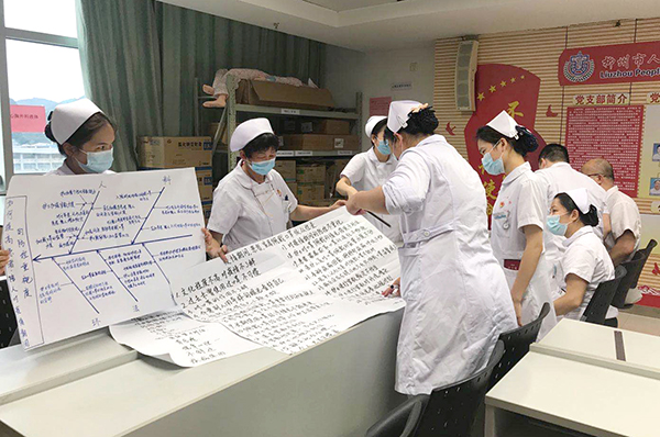 黨支部書記曹健斌同志結(jié)合實(shí)際就現(xiàn)階段問題,將小組人員分成兩組展開討論,力求群策群力做好防控工作。大家進(jìn)行頭腦風(fēng)暴,暢所欲言,不批評(píng)、不質(zhì)疑、不打斷,通過團(tuán)隊(duì)的力量查找到29個(gè)“影響患者及陪人佩戴口罩依從性差”的原因,并使用 “魚骨圖法”將原因歸納為“人”、“制度”、“環(huán)境”、“方法”四類,再以投票法聚焦原因,找解決問題的對(duì)策。整個(gè)活動(dòng),大家對(duì)學(xué)習(xí)研討的工具和方法運(yùn)用得當(dāng),環(huán)環(huán)緊扣、層層遞進(jìn),就問題的解決提出了新思路、新方法。