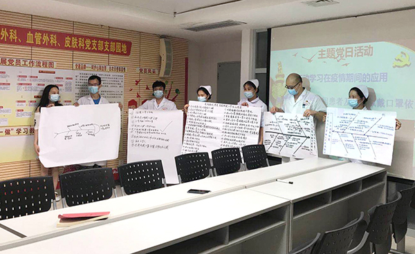 柳州市人民醫(yī)院心胸外科、血管外科、皮膚科黨支部開展“行動(dòng)學(xué)習(xí)進(jìn)支部 群策群力抗新冠”主題黨日活動(dòng),圍繞著疫情期間部分患者及陪人佩戴口罩依從性差的問題,利用行動(dòng)學(xué)習(xí)法來進(jìn)行解決。