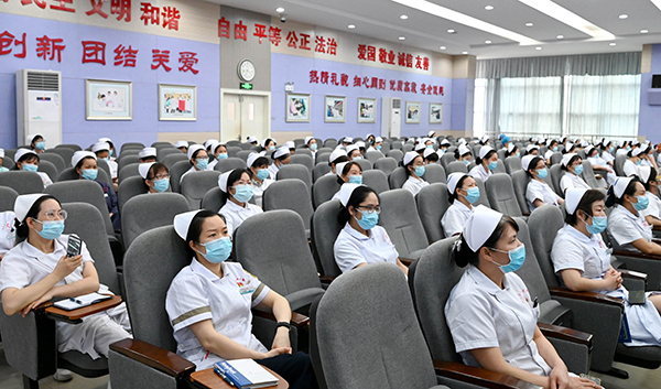隨著醫療護理工作服務需求層次的不斷提高,護理服務不斷細化和延伸,給護理隊伍提出了更高的要求。5月28日下午,5?12國際護士節系列活動之護理隊伍建設研討會在第一學術廳舉行。護理部三位副主任,全院護士長及護士代表參加了此次研討會。研討會由護理部副主任黃宇霞主持。研討從團隊建設、人才培養、新冠肺炎工作的經驗分享、病房管理的成效等方面進行交流。