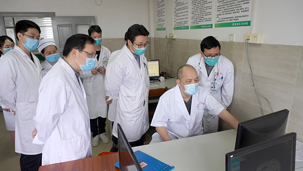 診室里,他指導科室醫生如何分析病情,給出合理的診療意見和后續治療方案。
