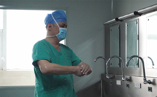 4月21日上午,7點50分,李威院長的身影準時出現在了鹿寨縣人民醫院的手術間,換衣、洗手、消毒,一套規范的術前流程,有條不紊的進行著。