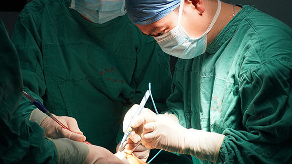圖為 柳州市人民醫(yī)院醫(yī)聯(lián)體派駐專家王棟棟正在為病人進行手術(shù)