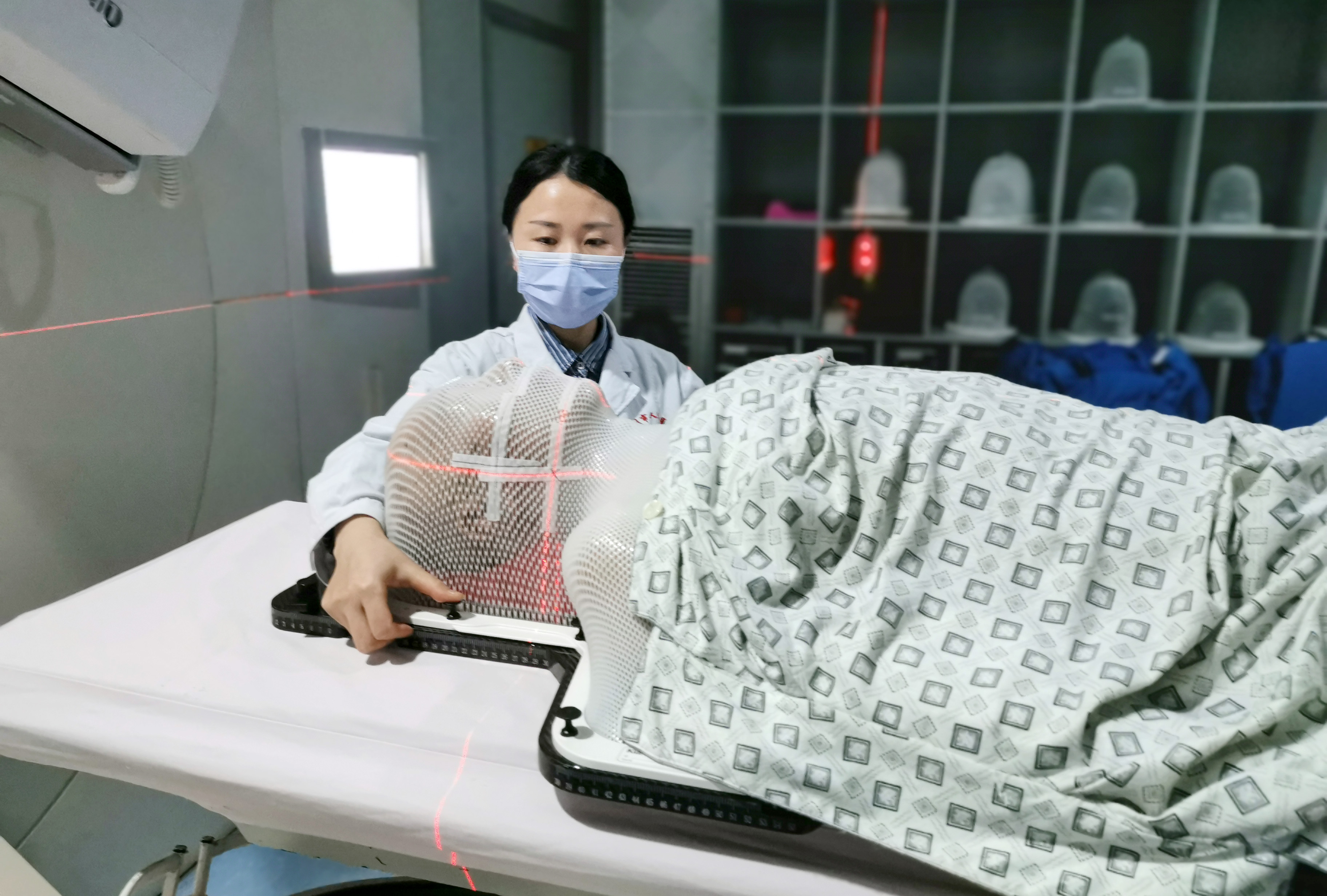 放療前需要給患者定制熱塑膜面罩,固定住患者體位,大多數患者都能夠堅持10-20分鐘。但為文老伯制作面罩時,熱塑膜剛扣上去不久,他就開始出現心慌、胸悶、氣喘的癥狀。主管醫生梁妮醫生了解到后,暫停了文老伯的治療進度,詳細詢問了他制作面罩時的不適感,文老伯表示,制作面罩時,獨自呆在密閉燈光昏暗的定位室,讓他感到焦慮、局促不安,而面罩的束縛,使文老伯的恐懼感進一步加重。由于住院期間文老伯獨自住院,愛人和子女都不在身邊,遇到焦慮擔憂的事,文老伯也沒有傾訴的對象,梁醫生了解到這個情況,每日查房時,除了詢問病情,都會多花時間與他聊家常,關心文老伯醫院飯堂的飯菜是否合胃口,衣物是否足夠,心理有什么擔憂的事都可以說出來,大家想辦法一起解決,還主動給文老伯的子女打電話溝通病情,反復告知如果他們有時間,一定要來陪老人家。