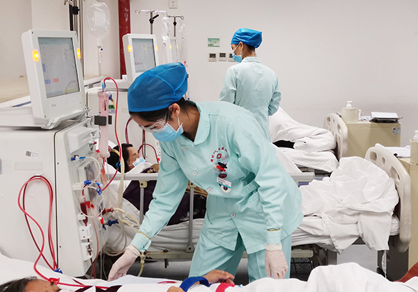 在全民抗擊新冠肺炎疫情,無(wú)數(shù)的目光聚焦在發(fā)熱門診、隔離病房的時(shí)候,在我們呼吁減少人群聚集、普通百姓盡量閉門不出的時(shí)候,血透室的患者為了維持腎臟替代治療,需要外出往返于醫(yī)院,且較普通健康人抵抗力低下。科室及時(shí)制定了血透室新型冠狀病毒感染的肺炎疫情防控方案,將篩查關(guān)口前移,設(shè)立專人負(fù)責(zé)預(yù)檢分診,嚴(yán)格對(duì)每個(gè)病人及陪護(hù)、家屬在入室前進(jìn)行體溫檢測(cè),詢問接觸史,督促所有患者透析全程佩戴口罩,對(duì)自己負(fù)責(zé),對(duì)他人負(fù)責(zé)。血透室全體醫(yī)護(hù)人員默默地做好自我防護(hù),堅(jiān)守崗位,操作機(jī)器,為病患完成治療……春節(jié)除夕至初六期間共完成透析治療723例次,其中危重癥患者CRRT(連續(xù)腎臟替代療法)治療15例次。