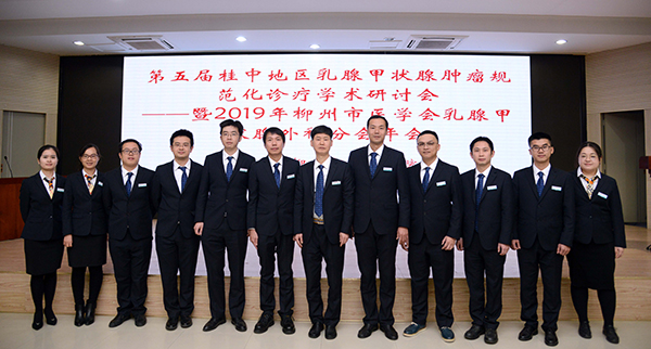 乳腺、甲狀腺外科屬于普通外科亞專科,早在醫院普外科建立時,就已開始了乳腺、甲狀腺疾病的治療;隨著學科的發展和完善,柳州市人民醫院乳腺甲狀腺病區正式成立于2006年6月,科室學習國內外先進診療技術及治療理念,逐步完善治療流程,規范治療方案,使乳腺、甲狀腺專科發展成為集醫療、教學、科研、康復于一體的醫院重點學科,也成為了柳州地區的一流專科。因學科發展需要,乳腺、甲狀腺第二個病區——普外四病區于2015年3月成立。普外四病區現有床位50張,醫師12人,其中主任醫師1人,副主任醫師4人,主治醫師4人,住院醫師3人。在科主任莊亞強的帶領下及全科醫護人員的共同努力下,科室整體水平得到飛速的發展;通過請進來、走出去的方式,與區內外同行進行廣泛的交流與合作,科室的診療水平更上一個新臺階。率先在柳州市常規開展乳腺癌保乳術及前哨淋巴結活檢術、隨著外科整形技術、游離腹壁真皮脂肪瓣技術的應用,保乳手術取得滿意的治療效果及美容效果。目前我科乳腺癌保乳率達30%,處于區內先進水平;率先開展乳腺癌I期背闊肌乳房重建術,目前該項技術達區內先進水平。率先在柳州市常規開展腔鏡甲狀腺手術,手術效果在柳州市處于領先水平,達區內先進水平。