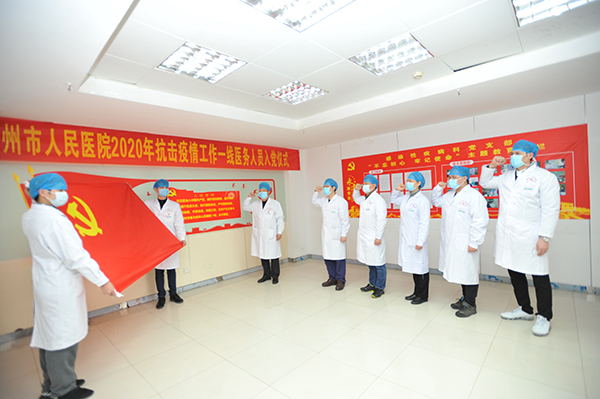 為了抗擊“新冠肺炎”,醫(yī)院第一時(shí)間成立醫(yī)療救治專家小組,作為在9.30爆炸案、H5N1、H7N9禽流感病毒性肺炎等突發(fā)事件的醫(yī)療救治工作中創(chuàng)下“零死亡率”奇跡,并積累了大量危重癥患者救治經(jīng)驗(yàn)的呂光宇、羅建宇兩位副主任,毅然承擔(dān)起我院新冠肺炎的醫(yī)療救治專家組成員的責(zé)任。羅建宇副主任除了要進(jìn)行全院范圍內(nèi)住院患者新冠肺炎病例篩查的會(huì)診工作,還要給科內(nèi)重癥患者制定救治方案。呂光宇副主任更是毅然挑起重?fù)?dān)進(jìn)駐負(fù)壓病房,對(duì)新冠肺炎患者進(jìn)行氣管插管、纖支鏡操作時(shí)幾乎和患者口鼻相對(duì),面對(duì)感染的高風(fēng)險(xiǎn),他沒有退縮,他說:“治病救人是我的本分,守護(hù)生命是我的天職。”他們舍小家為大家,疫情期間一直堅(jiān)守在醫(yī)院,以精湛的技術(shù)和飽滿的熱情奮戰(zhàn)在最前線,呈現(xiàn)了重癥“特種兵”特別能戰(zhàn)斗的隊(duì)伍特質(zhì)。兩位副主任沖鋒在前,不懼艱險(xiǎn),不怕犧牲,用實(shí)際行動(dòng)踐行了責(zé)任與擔(dān)當(dāng),在這特殊時(shí)期,兩位副主任光榮的加入中國(guó)共產(chǎn)黨。