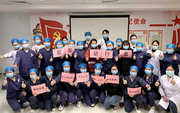 疫情發(fā)生以來,我院作為柳州市新冠肺炎患者定點(diǎn)收治醫(yī)院,承擔(dān)起抗擊新冠肺炎疫情的任務(wù),醫(yī)院對(duì)相關(guān)學(xué)科管理工作做出臨時(shí)調(diào)整:重癥醫(yī)學(xué)科副主任呂光宇負(fù)責(zé)第二住院樓隔離病房及負(fù)壓監(jiān)護(hù)病房的患者診治工作;羅建宇副主任全面負(fù)責(zé)重癥醫(yī)學(xué)科的工作,朱曉雯副主任協(xié)助;張磊副主任醫(yī)師全面負(fù)責(zé)EICU工作,此項(xiàng)決定對(duì)科室來說既光榮又艱巨,既要保證重癥醫(yī)學(xué)科、EICU大量重癥患者的安全救治,又要承擔(dān)疫情的救治工作。而此時(shí)的重癥醫(yī)學(xué)科一如往昔的繁忙,重癥患者50名,連續(xù)3臺(tái)ECMO高速運(yùn)轉(zhuǎn),并且多次到基層醫(yī)院轉(zhuǎn)運(yùn)重癥患者回科室救治。疫情嚴(yán)峻,全員取消休假,針對(duì)一些可疑病例,大家仍然需穿著密不透風(fēng)的防護(hù)服為患者進(jìn)行俯臥位通氣等治療及護(hù)理工作,科室始終處于高負(fù)荷運(yùn)轉(zhuǎn)的狀態(tài)。但面對(duì)疫情科室全體醫(yī)護(hù)人員積極響應(yīng),紛紛寫下請(qǐng)戰(zhàn)書,踐行不忘初心、守護(hù)人民健康的使命。本著不沖在防控第一線,就守護(hù)好大后方的信念,留守科室的同志各盡其責(zé),齊心合力,與上前線的同志一道努力打贏這場(chǎng)硬仗!