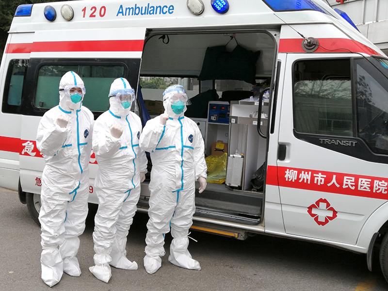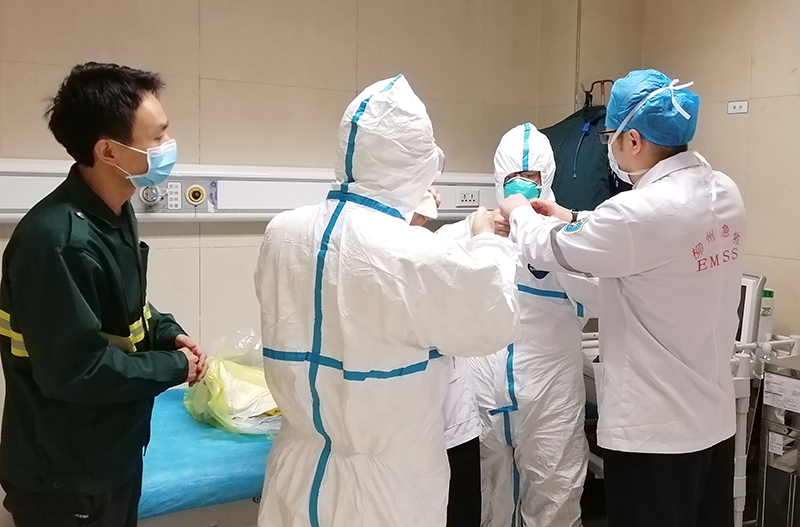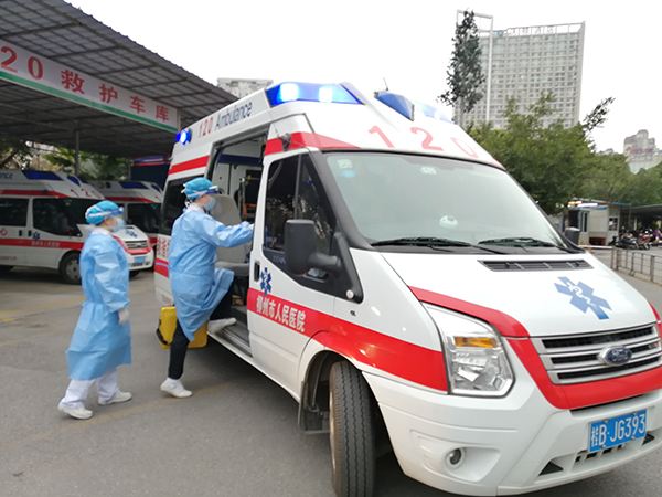 1月27日、1月31日,正是疫情肆虐、形勢嚴峻之時,這兩天對于急診科甘起云、牙韓濃、鐘毓峰、吳昊等四名醫護人員來說意義非凡……值班當天,他們接到了由市衛健委、醫院下達的緊急重要任務:啟用負壓救護車出遠診接新冠肺炎確診病人回院。他們二話沒說,放棄了午休、午餐的時間,在短短的十余分鐘內完成了準備工作:車輛再次檢測、物資準備、個人防護等。出診途中,他們忍著饑餓、穿著密不透風的防護服、在密閉的負壓車廂內長達五六個小時,當把患者轉運回院妥善安置后,卻沒有一句怨言,他們異口同聲地說:“我們為能圓滿完成此次特殊任務而感到光榮!”是的,他們是穿著防護服的勇士,是救死扶傷的白衣戰士!