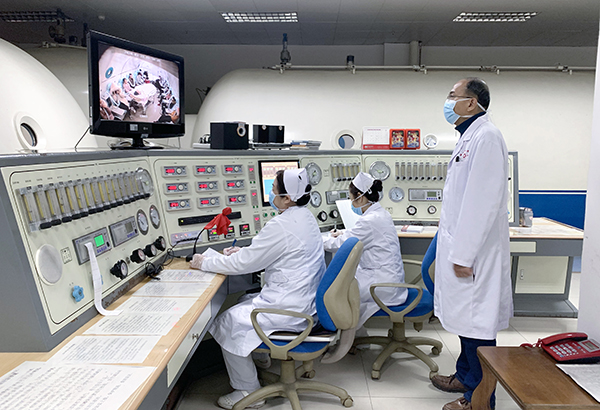 春節前,柳州市副市長盧柳屏帶隊到我院檢查新型冠狀病毒感染的肺炎防控工作和一氧化碳中毒救治工作開展情況。在康復醫學科高壓氧艙,盧柳屏副市長強調,高壓氧艙作為特種設備,一定要注意設備運行的安全性,定期檢查,保護醫務人員和病人安全。