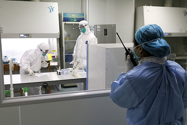 為應對新冠肺炎疫情,檢驗科啟用發熱門診應急實驗室,專門用于檢測發熱門診的標本,為發熱門診快速出具檢驗報告。發熱應急實驗室啟用準備工作,得到了設備器材科同事的大力支持,加班加點配備實驗器材,以最快速度完善實驗室配置。為盡快安裝實驗室生物安全柜,設備器材科同事親自運送安全柜安裝,為發熱應急實驗室啟用提供保障。實驗室啟用需要調動人員排班,大家都知道,在應急實驗室上班就意味著頻繁近距離接觸病毒,感染病毒的幾率非常大,在這樣高危的環境中上班需要很大的勇氣。但是抽調人員的決定得到科內同事的積極響應,大家紛紛報名。在安排應急實驗室上班的二十位志愿者中,80%為黨員,黨員在新型肺炎疫情防控工作中充分發揮了黨員模范作用,不畏疫情,勇往直前。