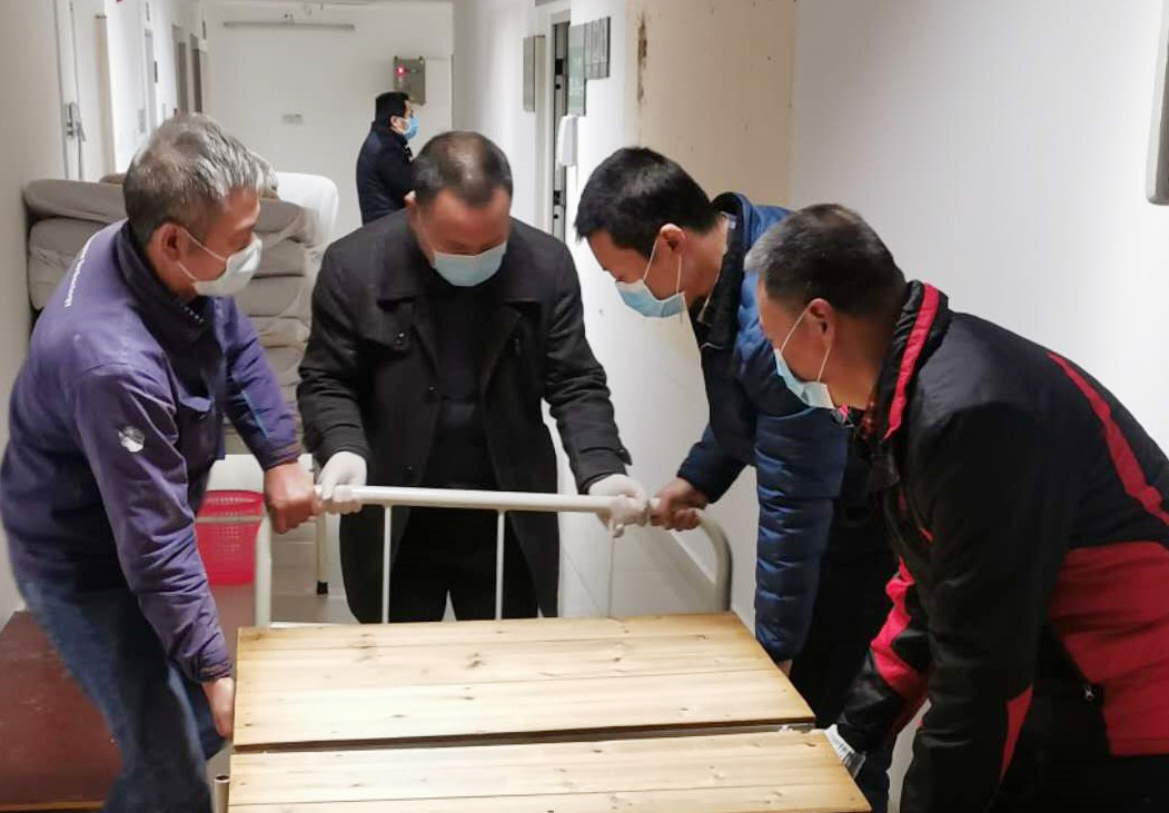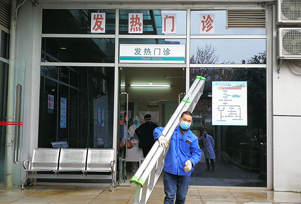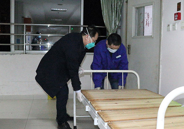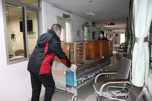 “1月22日,‘后勤部隊’接到第一個任務,就是根據工作需要,按照功能分區對第二住院樓分區域重新改造,更科學地收治病人?!崩铇s山說。安裝攝像頭、電源插座、腳踏水龍頭、紫外線消毒燈、更換角閥、加裝電話……醫院投入了近200萬元資金,添置相關設備,同時還在第二住院樓一樓開辟了疫情專用檢驗室,筑牢“堡壘”。
