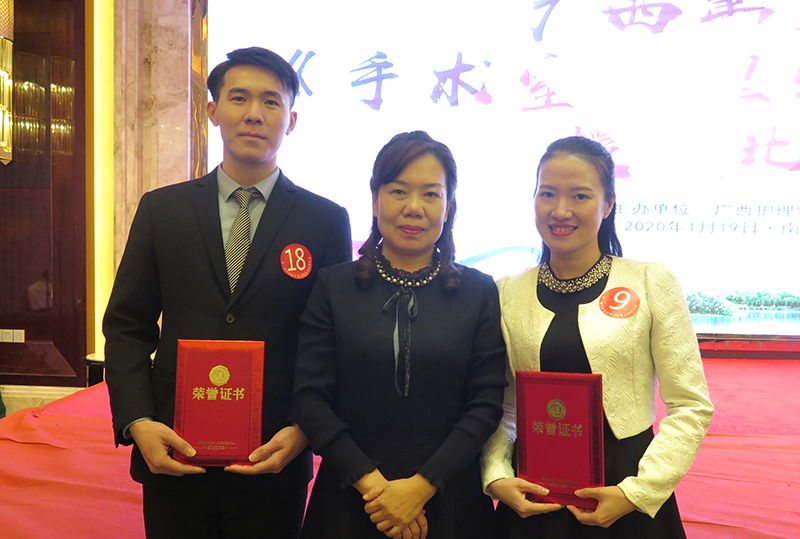 手術室參賽選手陸歡歡主管護師,結合手術室護理操作技術,圍繞《手術室護理實踐指南——手術隔離技術》主題,運用專業的授課技巧,從授課目的、掌握重點、臨床應用、課外拓展等方面,由淺入深地講述了手術隔離技術。我院手術室另一名參賽選手陳國松護士結合醫院的規章制度,緊密圍繞指南內容闡述了手術物品清點原則及注意事項,讓在座的護理同仁們對這個熟悉的問題有了新的認識與感觸。經過幾小時的激烈角逐,最終,我院陸歡歡、陳國松分別獲得廣西賽區二等獎、三等獎;陸歡歡將代表廣西參加全國復賽。