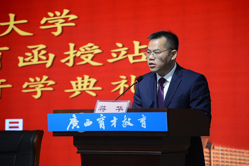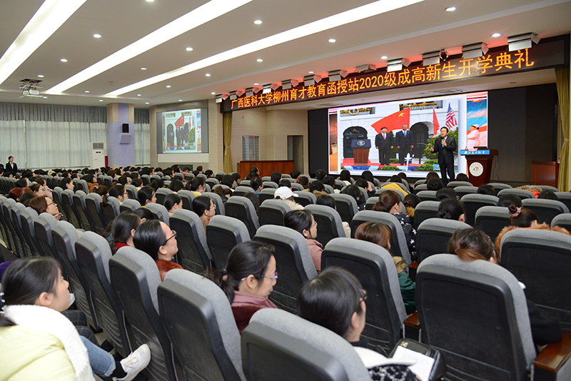 2020年1月11日,嶄新的晨光,迎來全新的開始,廣西醫科大學柳州育才教育函授站2020級成人教育高等教育新生開學典禮在柳州市人民醫院第一學術廳成功舉辦。廣西醫科大學繼續教育學院院長、廣西醫科大學學位評定委員會委員趙邦教授,廣西醫科大學繼續教育學院副院長劉慶委、副院長李春燕、主任黃明,柳州市人民醫院副院長潘光棟,廣西育才教育集團聯合黨委書記、董事長、函授站站長蔣華出席本次開學典禮。