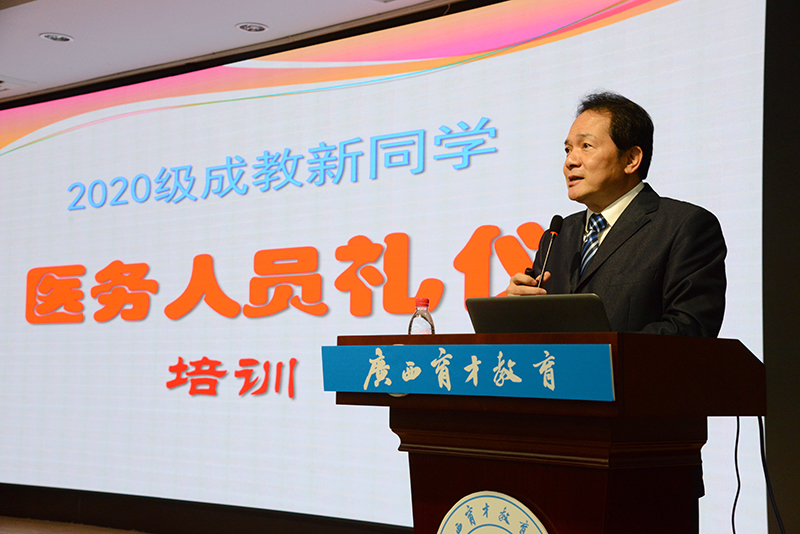 隨后,李春燕副院長帶領我院90名2020級新生宣讀了《醫學生誓詞》,趙邦教授給全體教師及新生作了“內強素質,外塑形象”的《現代禮儀》培訓,全院護士長、護理骨干、實習生代表共計300余人參加本次培訓。