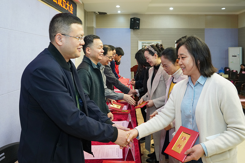 出席大會的領(lǐng)導(dǎo)及嘉賓為柳州市護理學(xué)會內(nèi)鏡護理分會委員頒發(fā)聘書。