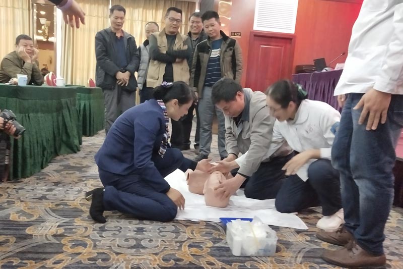 寒冷的冬季,是各種心腦血管疾病及一氧化碳中毒的高發期。為了讓廣大市民更多地了解疾病、預防疾病,提高自救及互救能力,12月11日下午,我院急救學校(急診科)的醫護人員聯合體檢部工作人員一同,對廣西地礦華地工貿集團員工開展了一場以“一氧化碳中毒的防治”等為主題的急救知識普及宣傳活動,為集團的一百多名員工傳授急救知識,為大家的健康助力。