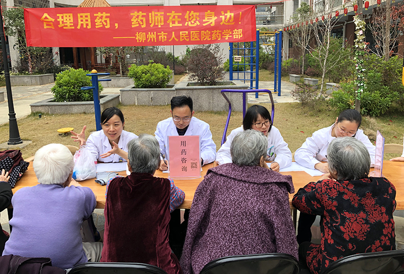 隨著當今世界人口日趨老齡化,老年人用藥問題變得更加突出。為進一步提高老年人的合理用藥認知度及依從性,避免常見的老人用藥誤區(qū),2019年12月16日上午,在我院今年11月1日引進的高層次人才——藥學部主任藥師周至品博士的帶領下,藥師團隊一行六人來到柳州安心頤養(yǎng)中心開展藥學義診活動,為在住的老人提供用藥咨詢和合理用藥科普宣教等服務。
