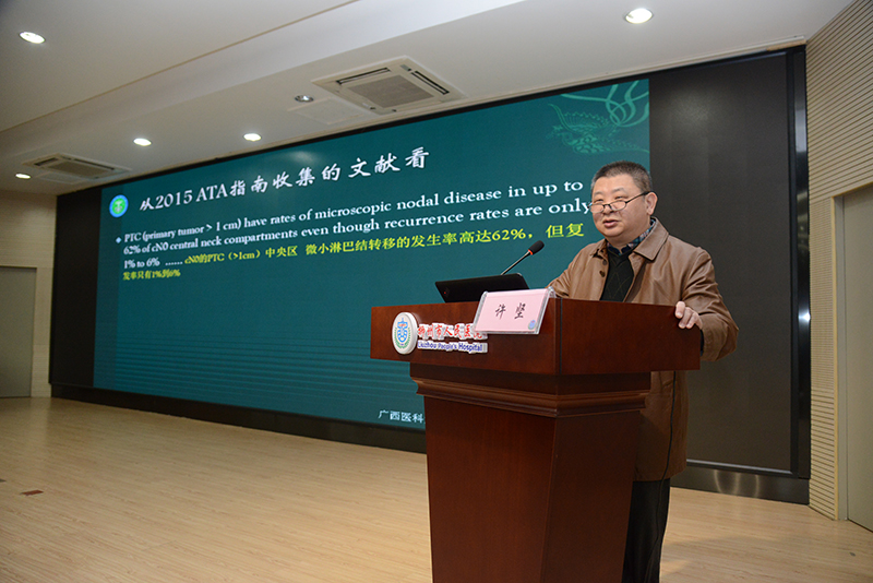 本會(huì)議特別邀請(qǐng)了區(qū)內(nèi)外著名乳腺甲狀腺腫瘤專家、中山大學(xué)附屬腫瘤醫(yī)院徐菲教授、中山大學(xué)附屬第一醫(yī)院徐向東教授、廣州醫(yī)科大學(xué)附屬腫瘤醫(yī)院李洪勝教授、空軍軍醫(yī)大學(xué)西京醫(yī)院易軍教授、中山大學(xué)孫逸仙紀(jì)念醫(yī)院曾韻潔教授、中南大學(xué)湘雅醫(yī)院王守滿教授分別針對(duì)HER2(乳腺癌的一個(gè)重要指標(biāo))陽性乳腺癌治療策略的探討進(jìn)行了精彩的分享、乳腺癌新輔助治療加減法與爭議探討、乳腺導(dǎo)管原位癌與保乳手術(shù)及相關(guān)的臨床問題作了精彩專題演講。此外,會(huì)議還邀請(qǐng)了廣西醫(yī)科大學(xué)第一附屬醫(yī)院曾健教授、廣西醫(yī)科大學(xué)附屬腫瘤醫(yī)院劉劍侖、韋長元、楊偉萍、莫?dú)J國、楊華偉、徐堅(jiān)教授解讀了2019年St. Gallen 乳腺癌研究熱點(diǎn)、針對(duì)乳腺病變活檢體會(huì)、超聲引導(dǎo)在乳腺病變及前哨淋巴結(jié)活檢的臨床應(yīng)用、乳腺癌保乳手術(shù)進(jìn)展、乳腺癌術(shù)后乳房重建術(shù)式選擇、甲狀腺微小癌是否需要進(jìn)行中央?yún)^(qū)淋巴結(jié)清掃問題與大家進(jìn)行了探討。我院普通外科四病區(qū)主任莊亞強(qiáng)教授針對(duì)乳腺癌內(nèi)分泌治療的策略與思考進(jìn)行了精彩的分享及主題討論。各位專家給我市及來賓、河池、欽州地區(qū)的乳腺甲狀腺專科醫(yī)務(wù)人員現(xiàn)場授課,答疑解惑。會(huì)議既有本專業(yè)最新、最前沿的治療理念,也有實(shí)用的診療規(guī)范,使各位參會(huì)學(xué)員對(duì)乳腺甲狀腺腫瘤的規(guī)范治療又有了新的認(rèn)識(shí)和提高,得到學(xué)員一致好評(píng)。