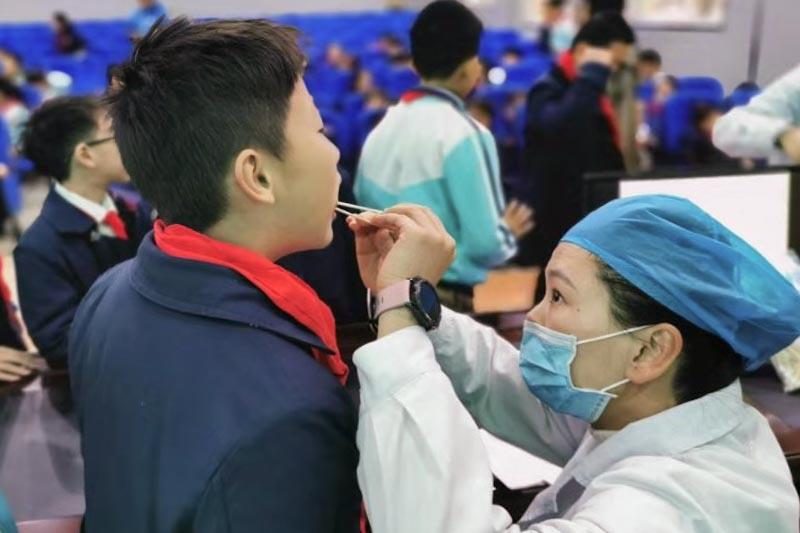 在健康講座后,口腔專科的醫生們現場為同學們進行了口腔檢查,并且針對每個人的口腔情況在檢查后給予了詳細的治療及保健建議。同學們熱情高漲,踴躍參與互動,活動進行得十分順利,得到了景小孩子們的熱烈歡迎和該校老師的好評。