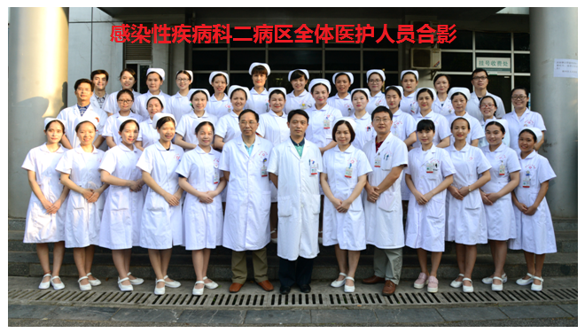 我院感染性疾病科二病區(qū)成立于2017年7月,共有A區(qū)和T區(qū)兩個病區(qū),現(xiàn)有臨床醫(yī)師17人,其中主任醫(yī)師(碩士研究生導(dǎo)師)1人,副主任醫(yī)師4人,主治醫(yī)師6人,住院醫(yī)師6人;博士研究生1人,碩士研究生12人;專業(yè)護(hù)理人員共39人,其中副主任護(hù)師1人,主管護(hù)師8人,護(hù)師14人,護(hù)士16人。